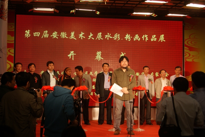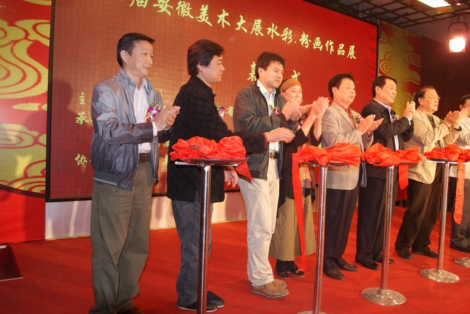 安徽省青年美術(shù)家協(xié)會(huì)主席、安徽省美術(shù)家協(xié)會(huì)水彩藝委會(huì)主任丁寺鐘致開幕詞 蕪湖市文聯(lián)主席夏光發(fā)發(fā)言 安徽省美術(shù)家協(xié)會(huì)主席張松發(fā)表這次展覽的重要講話 夏云興董事長和各界領(lǐng)導(dǎo)為此次展覽剪彩 夏云興董事長與安徽省美術(shù)家協(xié)會(huì)主席張松在展覽大廳興致勃勃地觀看展覽并合影留念