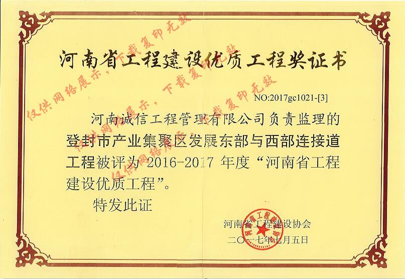 2016-2017年度河南省工程建設優(yōu)質工程登封市產(chǎn)業(yè)集聚區(qū)