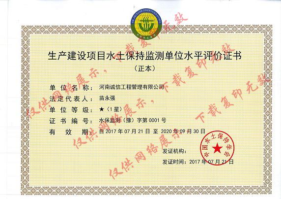 生產(chǎn)建設(shè)項(xiàng)目水土保持監(jiān)測(cè)單位水平評(píng)價(jià)證書(shū)
