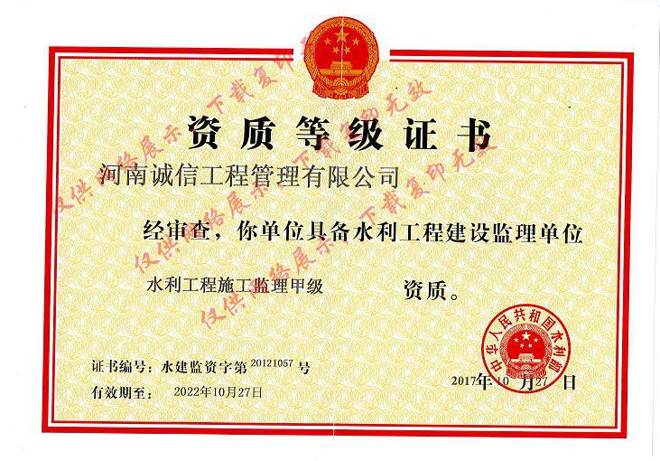 水利工程施工監(jiān)理甲級(jí)